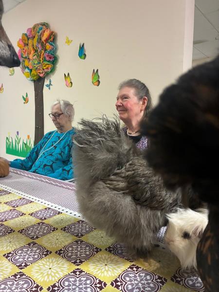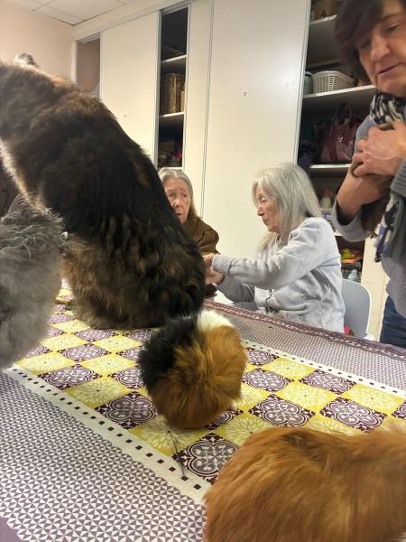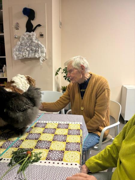 Un jour, place à la zoothérapie : chiens, lapins ou autres compagnons à poils viennent à la rencontre des résidents pour des moments riches en émotions. Les sourires s’illuminent, les souvenirs remontent, les gestes se délient… Le contact avec l’animal apaise, rassure et favorise les échanges, parfois même chez les personnes les plus réservées.