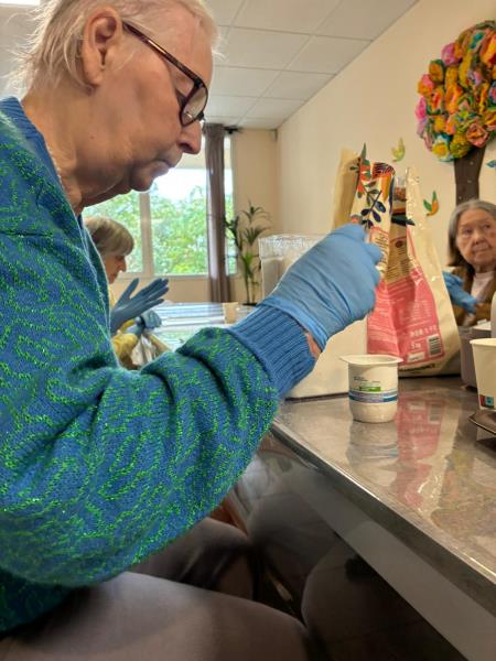Le lendemain, changement d’ambiance avec un atelier cuisine. Éplucher, mélanger, sentir, goûter… Tous les sens sont en éveil. Ces instants gourmands sont l’occasion de raviver des souvenirs de recettes d’antan, de partager des anecdotes et surtout de passer un moment convivial dans la bonne humeur.