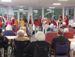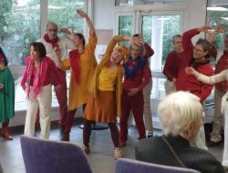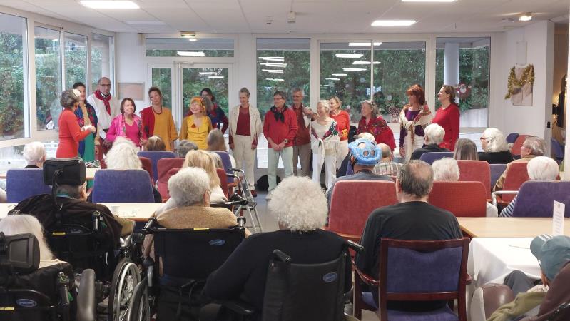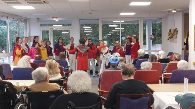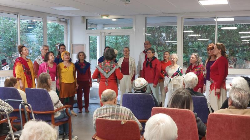 À la fin du concert, un temps d’échange convivial a permis aux résidents de discuter avec les chanteurs. Ces moments de partage ont été l’occasion de poser des questions sur le fonctionnement d’un chœur, les choix musicaux, et même de recevoir quelques conseils pour chanter à leur tour.